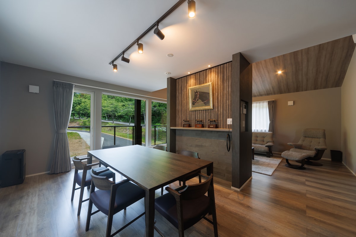 ★ベッドルームをリフォーム!より広々とした室内空間へ。 【1】スノーアクティビティの聖地 × 最大6名の新築一棟貸切 国内有数のスキーリゾート「ニセコビレッジスキーリゾート」や「ルスツリゾートスキー場」等から車で数十分。「えぞ富士」と呼ばれ親しまれている羊蹄山の麓にオープンした高級ヴィラ。羊蹄山とその山のから湧き出る透き通った天然水。羊蹄山を含む360度見渡す限りの自然。そんな大自然の中心で過ごせる施設は類を見ない、まさに”非日常"。最大人数6名ながらリビングやベッドルームは、ゆったりとした室内空間。贅沢な大人の休日を約束する、ラグジュアリーヴィラ。 【2】圧巻の室内設備 × こだわりの内装 トイレ2つ、バスルーム1つで夜と朝の時間も混み合わず快適。最新のテレビを設置、NETFLIXなどを視聴可能。(ご自身のアカウントでログインをお願いします) 全ての部屋に、冷房の強力なエアコンとパネルヒーターを完備。圧巻の高級ホテルグレードを超えるインテリアデザイン。施設名は大活躍をした競走馬をモチーフにしたネーミングで、室内にも競走馬のインテリアを設置。ファンには堪らないこだわりの内装。