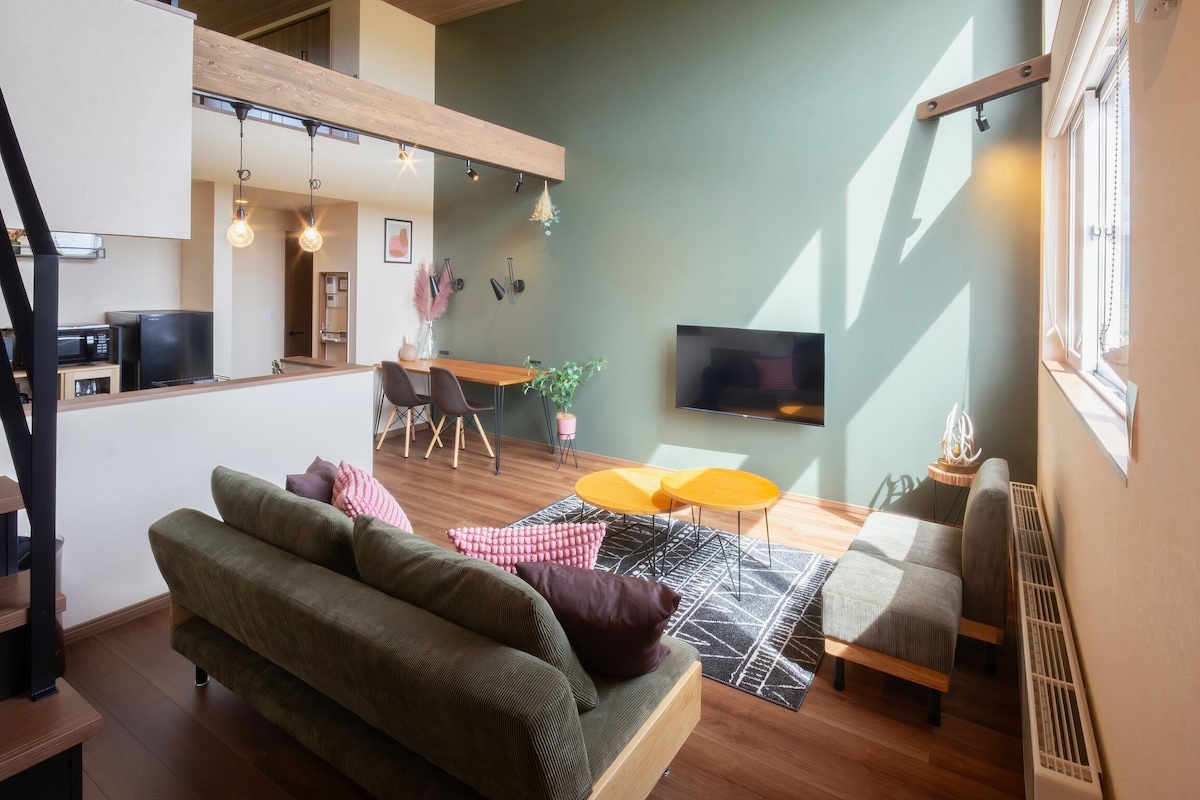 富良野站6分钟步行/开车6分钟到滑雪场/附免费停车/适合家庭/配备投影仪/最多可住7人/全新独栋出租