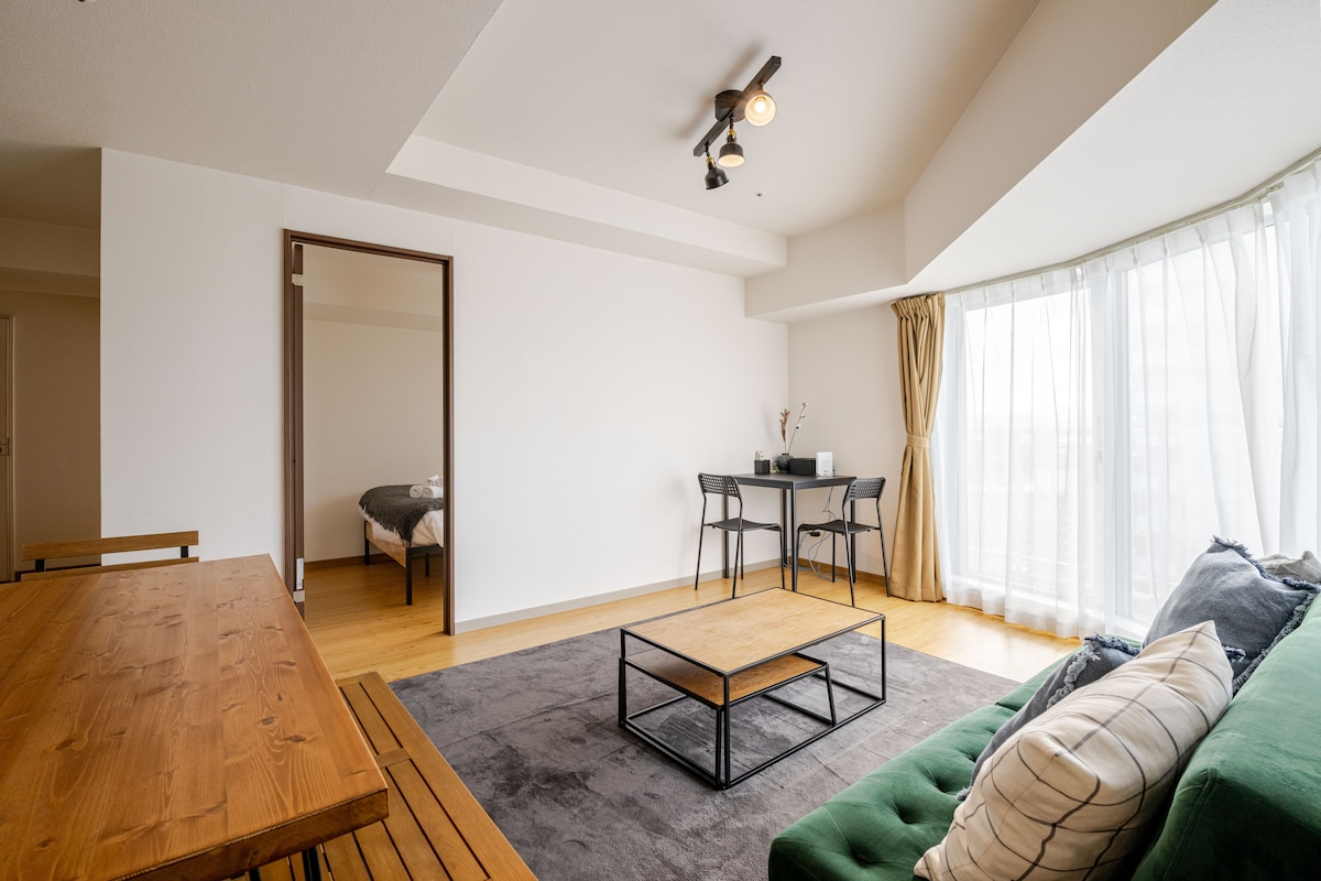 *札幌中心部*美しい川の眺め*快適な2BR*薄野徒歩5分*狸小路徒歩10分*Wi-Fi*長期滞在*