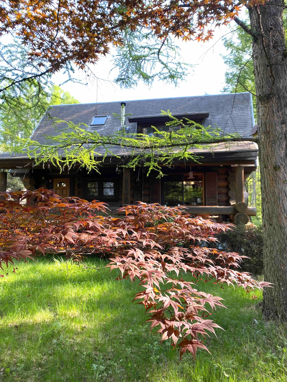 Authentic Log House in Yamanashi Experience the scent of 50cm-diameter North American logs. Perfect for families and groups. 1. Guests: Total number incl. pets: small/medium dogs 2. Bedding: * 1F: 2 beds / 2F: 2 beds + 1 futon / Loft: Max 4 futons 3. Options (¥3,000): BBQ / Wood-burning stove. Notes: • Dec–Apr: Winter tires required. • Quiet Stay: No parties. Excessive mess incurs a ¥30,000 fee.