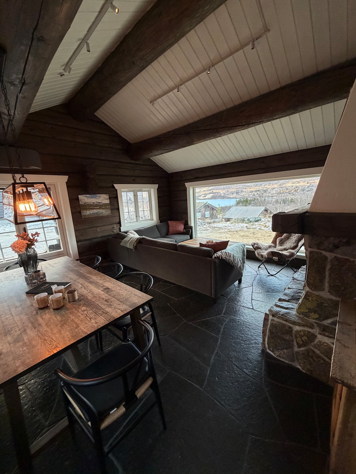 Lovely cabin in a quiet area about 4km from the centre of Geilo. The cabin can comfortably accomodate a family, and a week here will give you a refreshed mind and lowered shoulders. The cabin was refurbished in 2020 and combines closeness to nature with modern luxury. You get a beautiful view from a large terrace. Both hiking and cross-country tracks are found right by the cabin. The cabin has free wifi, a TV with Apple TV and Nespresso machine. There is a jacuzzi at no additional charge.
