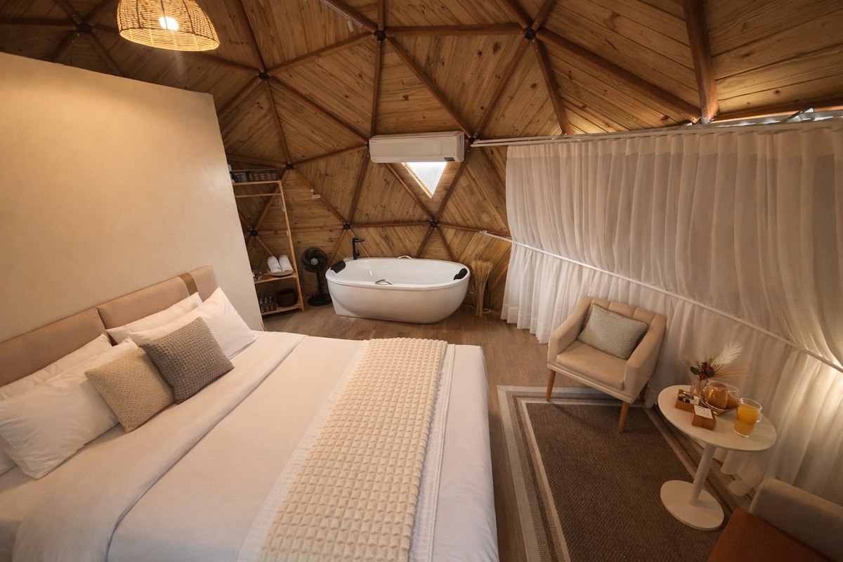 Hospedagem COMPLETA privativa com café, banheira hidro+aquecimento, ar condicionado Propriedade localizada7,5kmcentro de Águas de Lindoia. Domo Geodésico com paisagem encantadora, lugar romântico em meio à natureza com queda d’água no seu quintal, em meio as montanhas, dentro do bosque, com todo o conforto pensando na sua estadia. Viva a experiência! Terceira pessoa/criança será colocado um colchão extra(por favor avisar) ❤️CORTESIA:Ítens para o café da manhã já no local.Internet Starlink