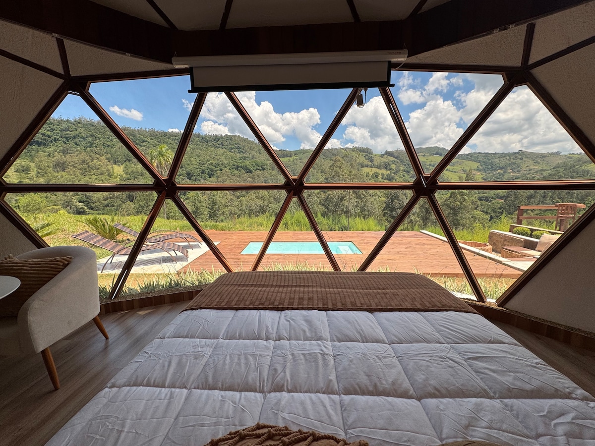 Em meios as montanhas de Serra Negra - SP, Dentro do Sítio Monte Belo. Para Relaxar , com luxo e sofisticação a apenas 5 minutos do centro da cidade. Conta com: Vista 360 das Montanhas Lareira externa e interna, Piscina climatizada, Banheira aquecida, com hidro, Área de churrasco, projetor de 84” Som de cinema, Chuveiro p/ 2 com vista Cafés locais para degustação gratuita dentro do chalé. Tudo PRIVATIVO Impressione seu Amor! Somos Pet Friend-Ly. Nao aceitamos Criança