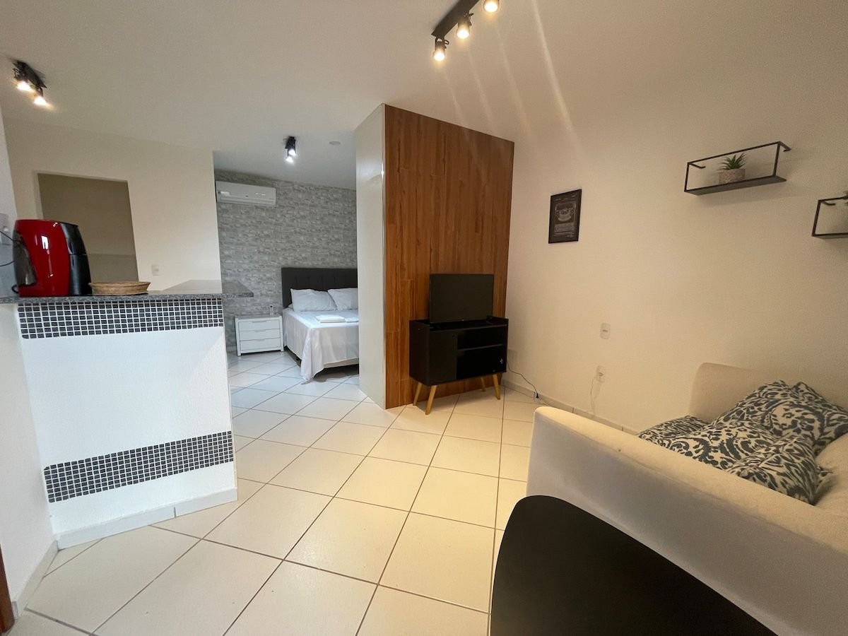 Apto tipo estudio com os ambientes separados. Espaco com armário embutido e mesa para home office, 2 TVs (sala e quarto), Claro TV com canais HD e Wi-Fi de alta velocidade. Há ventiladores de piso em todos os ambientes além de microondas, airfryer, fogão, geladeira duplex e todos os utensílios de cozinha. O banheiro é privativo com box de vidro. Possui máquina de lavar roupa. Meu apto não possui vaga de garagem, porém, indico uma moradora que costuma locar dentro do prédio