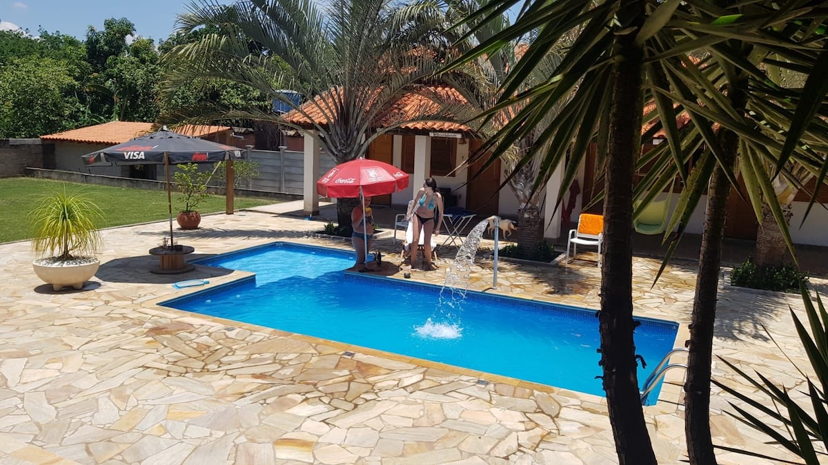 Refúgio exclusivo em meio ao verde de Indaiatuba, com piscina, churrasqueira e área gourmet completa, jogos e muito conforto. Ideal para grupos familiares. Trata-se de uma casa de hóspedes integrada a piscina anexo a casa principal onde residem os proprietários; porém os espaços são independentes e privativos, e não são compartilhados entre proprietários e hóspedes, bem como os acessos de entrada e saída. Reservas a partir de 2 e até 11 pessoas. Pet Friendly! Feriados Prolongados Consulte-nos!!