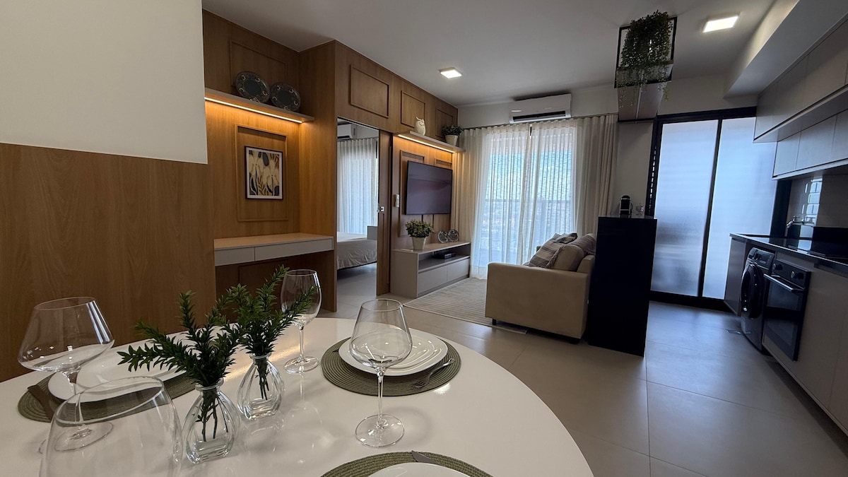 Viva uma experiência de conforto e praticidade! Preparamos um apê moderno, mobiliado com muito carinho para sua estadia. Você vai se sentir em casa! Ambiente aconchegante com: Cozinha completa, varanda ensolarada, cama de casal com closet, Smart TV, Wi-Fi, ar-condic e roupas de cama/banho novinhas e macias! E mais: além de um studio charmoso e lazer no condomínio, você estará em uma localização privilegiada,perto do Bosque dos Jequitibás, Av. Norte-Sul e Cambuí, com ótimos restaurantes e cafés.
