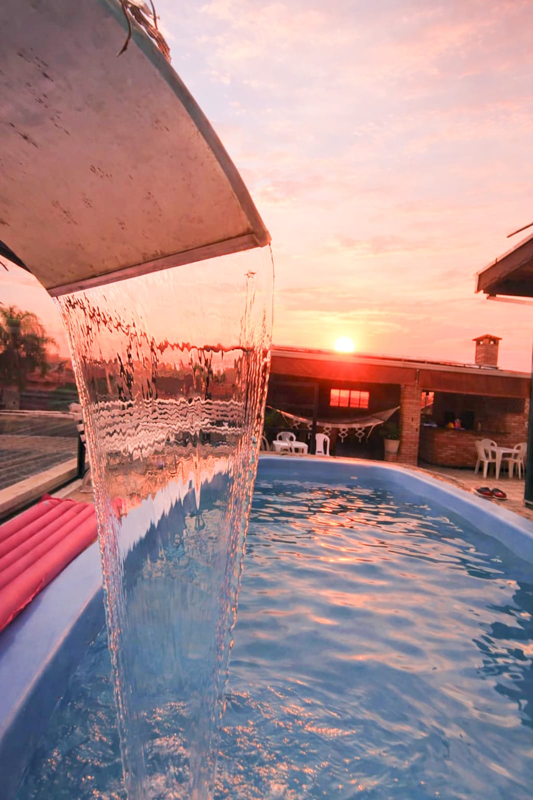 Casa espaçosa em condomínio fechado com ampla e confortável sala de estar, ambiente integrado com a cozinha gourmet, com 4 suítes amplas, 6 banheiros, piscina e churrasqueira. Completamente clean, toda envidraçada, conta ainda com moderna cozinha com cooktop, fogão, geladeira e microondas. Roupas de cama e banho são oferecidas nas acomodações. Seu animal de estimação é muito bem-vindo também. Localizada em Jaguariúna (SP), há apenas 10 min de Holambra, 12 min de Pedreira e 15 min de Campinas.