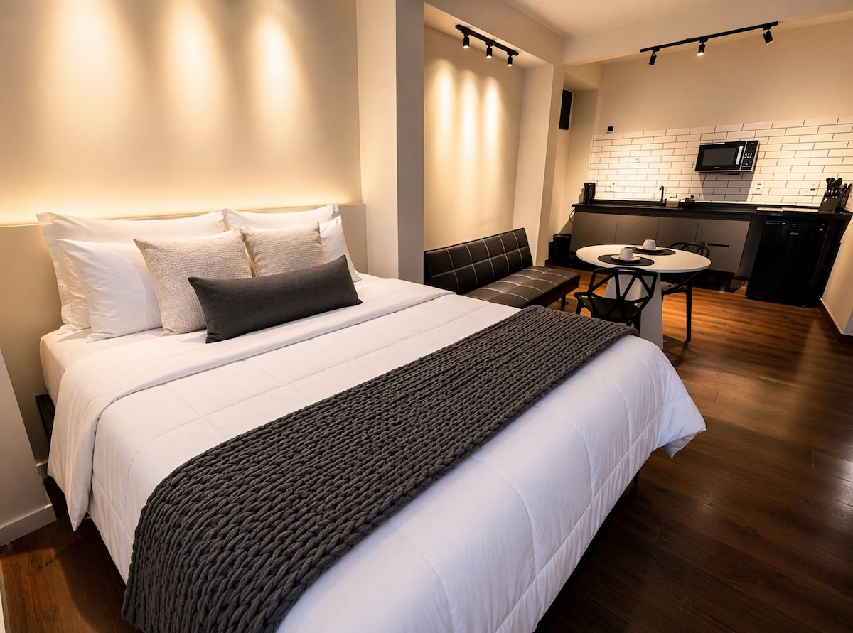 Cinema House was created for those seeking a unique experience: cinematic-style spaces, artistic aesthetics, vintage touches that turn every moment into something special. You’re close to everything. Relax in a Super King Size bed, enjoy the comfort of air conditioning, and unwind in a space designed to inspire and enchant. Perfect for couples, content creators, or anyone looking to live days worthy of a movie. Photo and audiovisual productions available upon prior request.