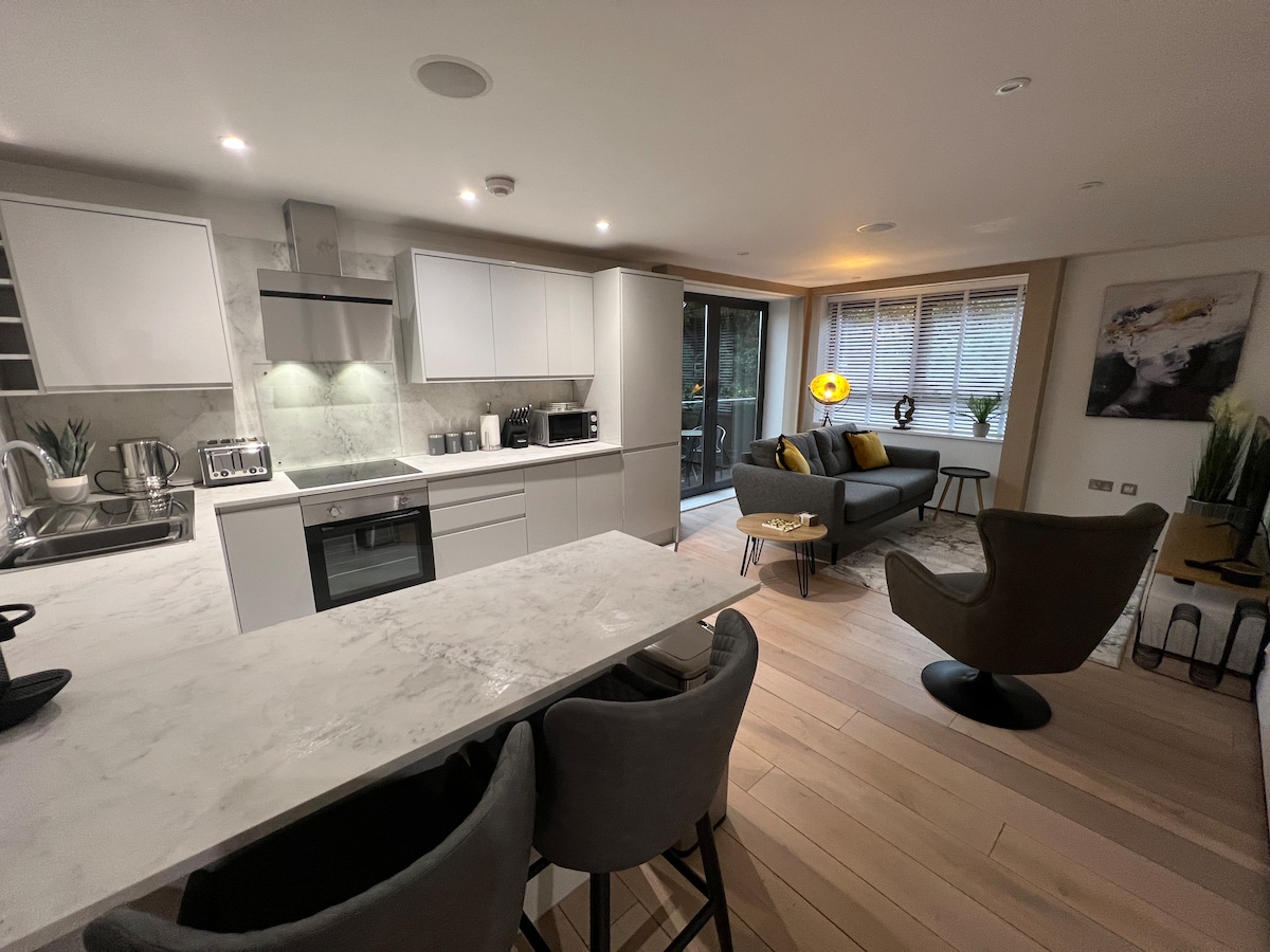 A well appointed 2 bedroom and 2 bath in the riverside Brewery Wharf right in the city centre. An open plan living space with a well equipped kitchen appointed with oven, fridge/freezer, washing machine and dishwasher. The lounge has a comfortable sofa bed for occasional use. Both bedrooms are doubles. A balcony off the lounge and also main bedroom. In a buzzing location on your doorstep but a very quiet and highly-regarded apartment complex. Free parking space underneath access via lift.