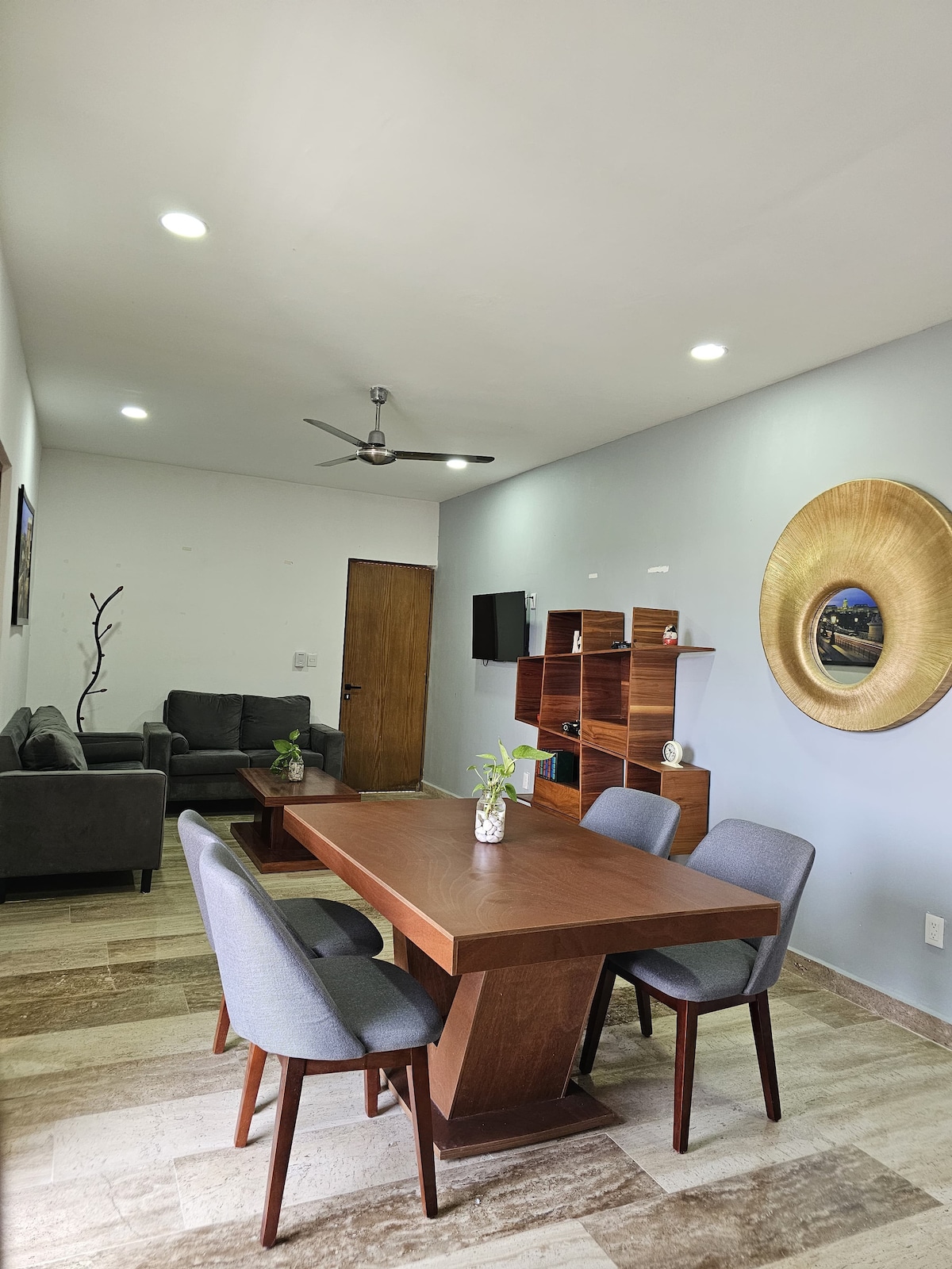 Apartment Loft style (40 m2) in closed complex ( of 5 apartments in total). The Apartment has social space, small kitchen with basic things to cook, upstairs 1 bedroom with great beding, 1 bathroom. The space its ideal for 2 people but we have an sofa bed we can comfortably take 3 people. Parking space inside teh property. 10 minutes away by car from Paseo de Montejo and Centro, and 10 minutes away fron the north of the city. Great connection with circuito. Parque de la Aleman 2-3 blocks away.