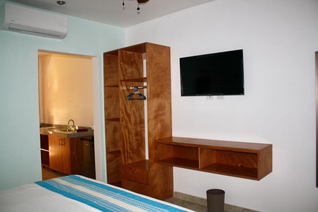 La mejor característica de esta habitación es su locación, tienes la playa y el muelle justo en frente de ti, y el centro de la ciudad a la vuelta de la esquina. Junto a nosotros se encuentran bares y restaurantes con música divertida todas las noches hasta las 4 am. Los cuartos del hotel garantizan un espacio limpio y funcional. Todos son bienvenidos, sin importar quien seas o de donde vengas, te trataremos con el respeto y la hospitalidad que te mereces.