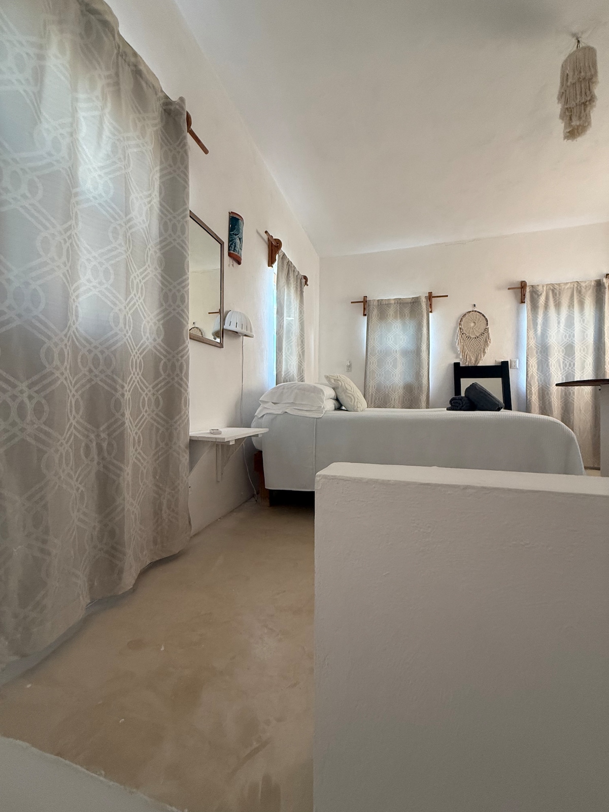 Escape to this beautiful, light-filled loft, perfect for couples or families with up to two children. Nestled in the serene Yum Balam building in Punta Cocos—the quietest, most tranquil part of Holbox—you’ll experience the island’s magic far from the busy center and crowds. Wake up to the sound of waves and unwind on your private balcony with breathtaking sunset views. Stay connected with high-speed Starlink Wi-Fi (up to 50 Mbps).