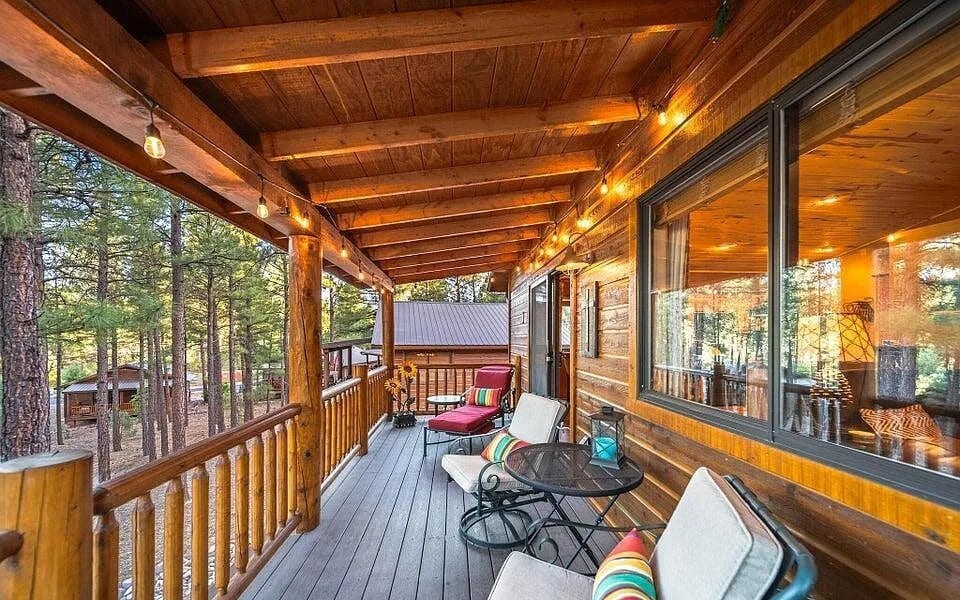 This rental is right between Showlow and Pinetop. The woodsy cabin is perfect for an individual, couple as well as small group or family. The cabin is pet friendly. The upstairs loft is a hit with children and additional sleepers. Guests may access the clubhouse and it’s immenities. The two seating areas inside as well as outdoor firepit allow for diversity of gathering. The community is quiet, friendly and highly wooded. Smart tvs and starlink Wi-Fi, and Firepit. Central ac and heating.