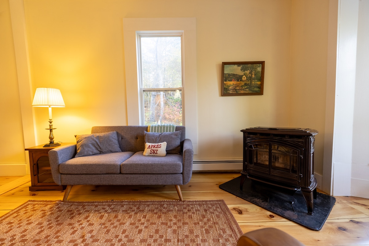 Renovated modern farmhouse studio in the White Mountains. We are the 4th generation in our family’s home. Posts and beams with new kitchen, shiplap, hardwood floors, and large bathroom, and great view overlooking the fields. 36 acres of field, woods, and cut your Christmas Tree here. If lucky you will catch a glimpse of the horses in the field. Close to hiking, skiing, and lakes. Waterville Valley 9 miles, Loon Mtn. 15 miles. Owls Nest Golf Couse. Private entry /private studio.