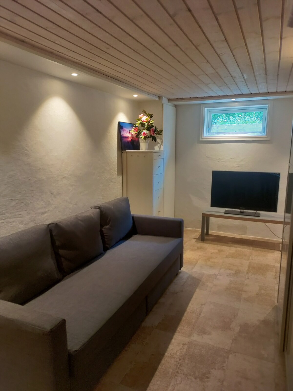 Nydelig liten kjellerleilighet, wifi, varmepumpe, kjøkken med hvitevarer, tv med Nettflix. Passer best for 2 personer, men det er også en sovesofa her (Denne passer best for barn). 100 meter til stranden, 15 min til Nordmarka, med populære turer som Mørkgonga og kongens utsikt er rett over fjorden. 10 min til Hønefoss og 25 min til Sandvika. Dyr er ok.