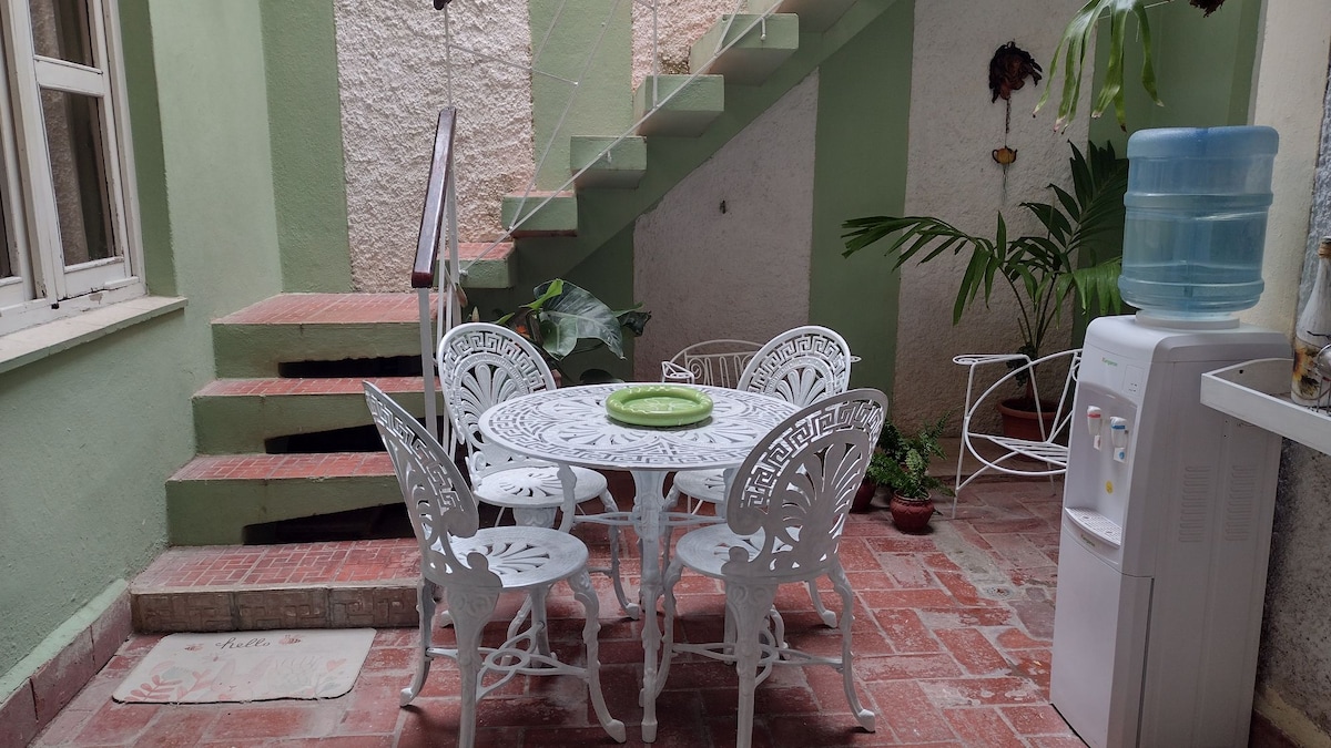 Beautiful apartment on the heart of Holguin city, "City of the parks"m Cuba. We have a comfortable bedroom with a queen bed and air conditioning, living room, bathroom with warm and cold water, fully equipped kitchen and large terrace. We offer a garage with security for your rented car and laundry and ironed services are included if needed.