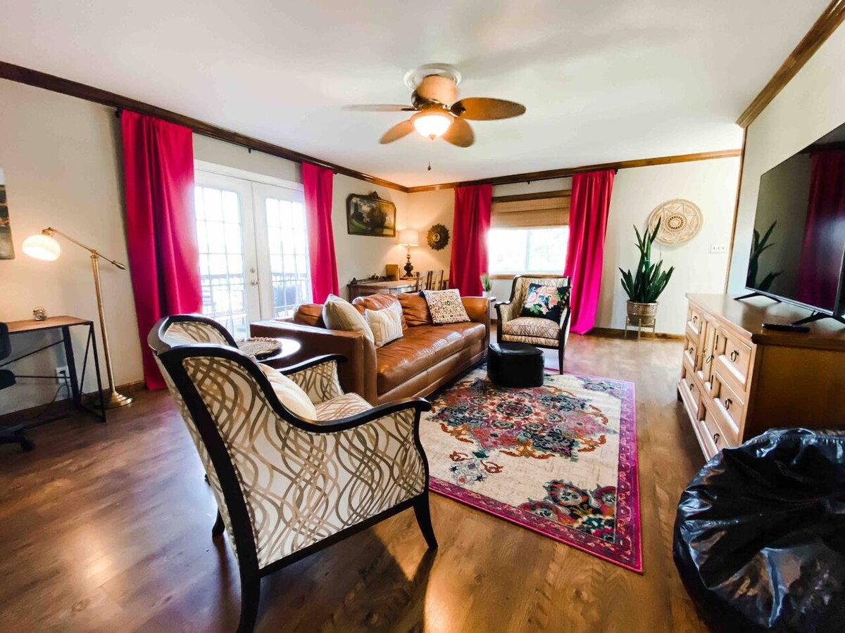 This lodge style Airbnb motel is the perfect mix of comfort, vintage style, and rustic touches. A popular stop for mountain bikers, motorcyclists, and adventure seekers! 2 mi. from HISTORIC DOWNTOWN Eureka Springs 4 mi. to Thorncrown Chapel 6 mi. to Lake Leatherwood 12 mi to Beaver Dam KEY FEATURES: ☀ Plush King-sized Bed ☀ 50” Roku TV ☀ Salt Water Pool ☀ Fire Pit & Covered Pavilion ☀ Eureka Springs Trolley Stop ☀ Ziplining, Canoe & Kayak Rentals Nearby