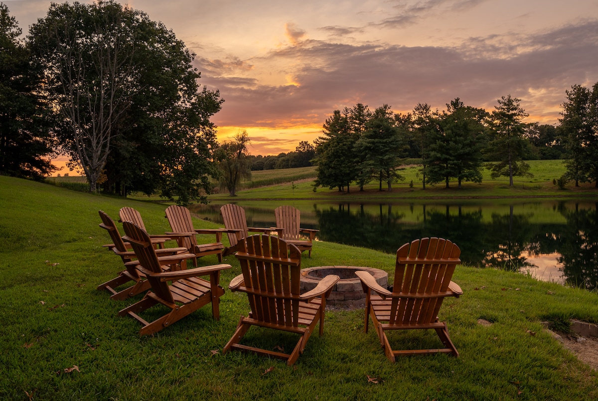 Rough River Oasis:靠近湖泊-露天平台-篝火坑