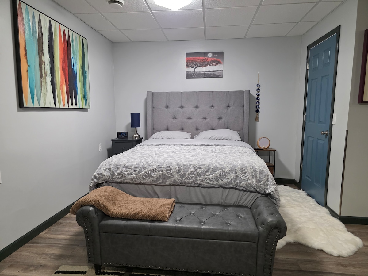 The Suite is a cozy place to rest from your travels or stay while you visit family/friends. Away from the bustle of downtown, yet only a 10 minute drive to all the venues in the Grand Rapids downtown area. It’s a small but well stocked suite , self contained space in the front of our home. Tanger Outlet is 1 mile away for convenient shopping. There are a number of restaurants close to choose from. Continental breakfast provided ( plant based) hot/cold cereal, bread, fruit, coffee bar.