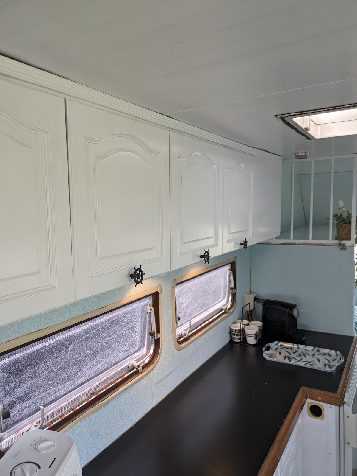 Kom tot rust in onze sfeervolle Beachy. Deze staat op een eigen veldje op onze kleinschalige boerderijcamping. Uniek aan onze caravan is dat de achterklep open kan en u vanuit uw bed (140x200) uitkijkt op de Wadden dijk. Standaard opgemaakt met een lits- jumeaux dekbed. Er is een ruime opberg kast en in het keukentje vind u een koelkast, waterkoker en Nespresso. Handdoeken zijn aanwezig. U maakt gebruik van het algemene sanitair.