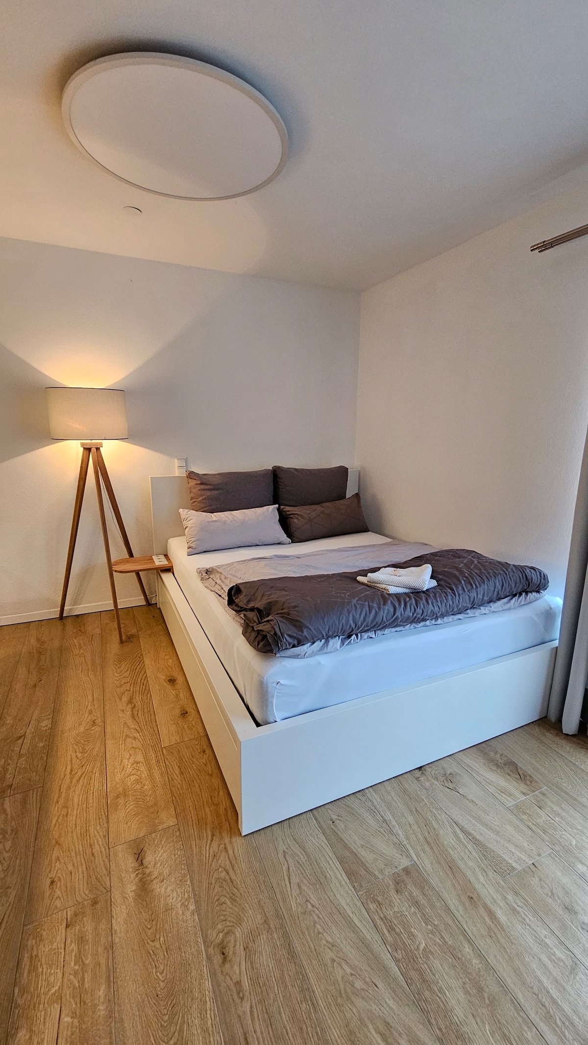 Fühl Dich rundum wohl, in dieser modernen 2 Zimmer Wohnung. Das Apartment besticht durch seine hochwertige Einrichtung und zeugt von hoher Qualität. Das 60qm große Apartment verfügt über ein 1,40ger Polsterbett, 40 Zoll SMART-TV, gratis WLAN, Waschmaschine, Trockner, Bügeleisen, moderne Küchenzeile inkl. Kaffeemaschine, Spülmaschine. 15 Minuten ins Zentrum von Augsburg und 35 Minuten nach München, 5 Fahrminuten zur Auffahrt Autobahn A8 Stuttgart/München.