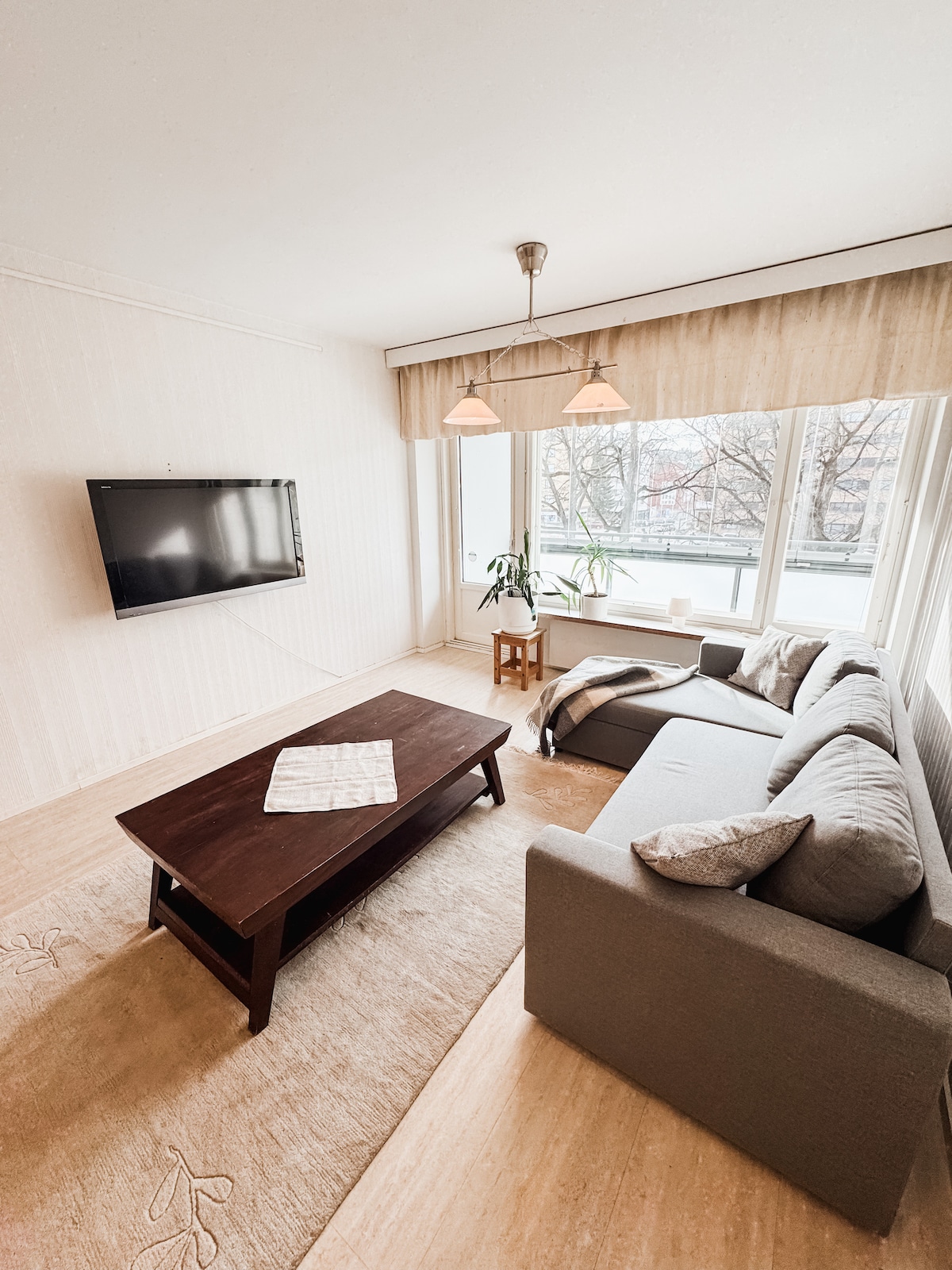 A cozy studio in a peaceful neighborhood, close to downtown Lahti. Within a 10-15 minute walk are Malva, the Travel Center, market square, sports center, harbor, and Sibelius Hall. The studio includes a living area, fully equipped kitchen, and clean bathroom. For extended stays, a washing machine is accessible outside the studio. The window faces the street with some car noise. Parking with a car heating plug is available in the courtyard. Enjoy nearby Lahti outdoor trails!