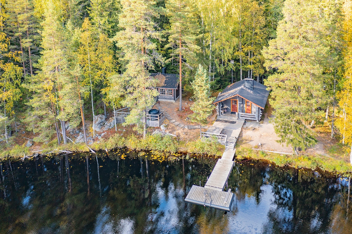 A modern 3 bedroom cabin with total privacy. The heart of the cabin is the living room with large scenic windows that bring the surrounding nature and sunset indoors. This cabin fits for every season. A premium and traditional lakefront sauna and a hot tub are located by the unique lake spot with superb views. Listing name: L a k e c a b i n . f i * Bookings starting Oct-Apr: hot tub fee is €125. Travel times by car: HEL city & airport 80min Lahti city 35min Heinola town 10min (8km)