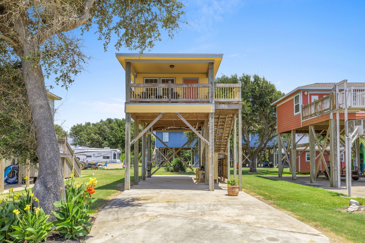 Relax with the whole family at our Unique Beach House in the trees. Come enjoy and relax in our beach getaway. This cozy home is perfect for a family of 4 or a Mommy’s only vacation! The home is in a great beach community that is a short walk to the beach. But if u don’t want to walk you can just enjoy the ocean view from the porch. We are also just a short walk to the Peveto Bird Sanctuary for those bird lovers! Come Stay with us! I promise you want regret it!