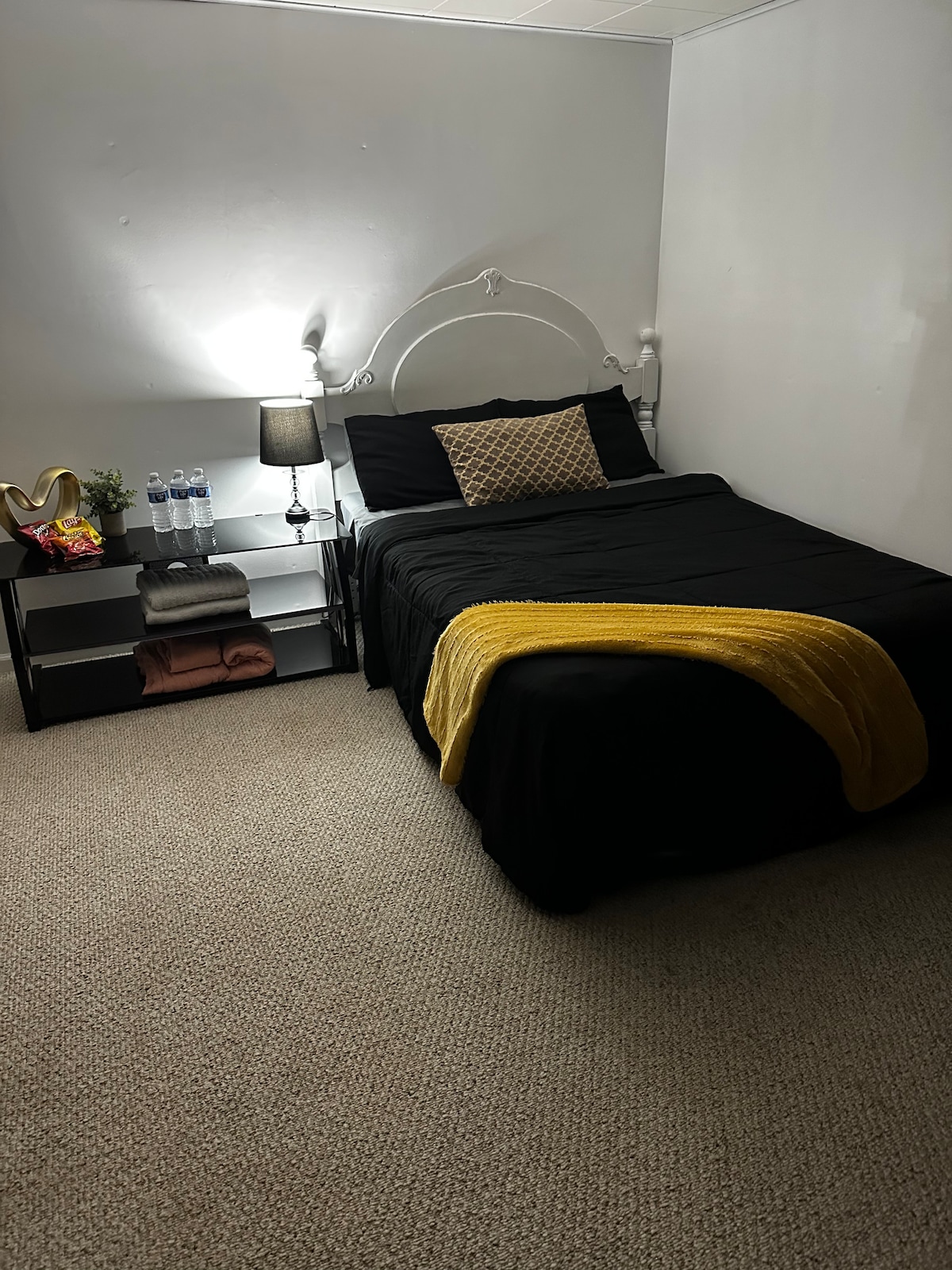 Enjoy this private suite, perfect for short or extended stays! It features a full kitchen with all essentials, a full bathroom, and a cozy living room with a reclining sectional and smart TV. The bedroom has a king bed, with two twin XL beds next to the living room, plus an optional queen air mattress for extra guests. For added convenience, there’s a combo washer/dryer that both washes and dries. Relax and make yourself at home!