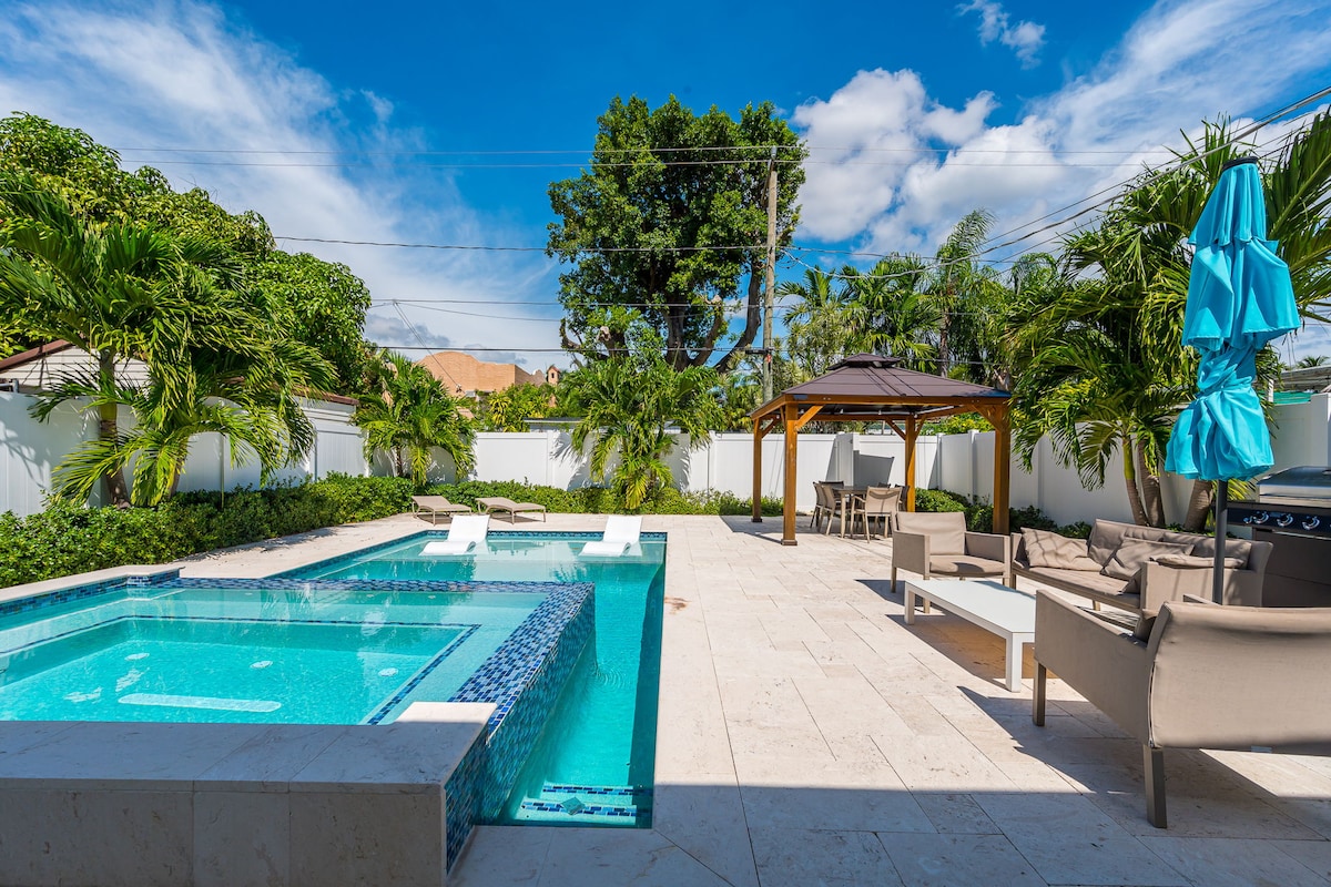 Welcome to CASA DÉJÀ VU A high-end space thoughtfully created just for you, in the heart of Fort Lauderdale. ✔️ 8 min to the beach | 10 min to Las Olas ✔️ Heated saltwater pool + outdoor hot tub ✔️ Garden with gazebo, BBQ & loungers ✔️ 2 beds (King + Queen), fast Wi-Fi ✔️ Fully equipped kitchen + Smart TVs ✔️ Free bikes & beach gear ✔️ Quiet and safe neighborhood ✔️ Free parking + 24/7 hosts