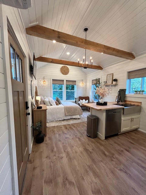 This unique place has a style all its own. You will love the mid-century feel of this cozy studio apartment. Walking distance to Waterfront music venue. Fully equipped with a stylish kitchen, roomy bathroom, and a raised private patio for outdoor dining. This second floor apartment has a comfortable bed (Full-Size), TV, fast Wi-Fi, and is pet friendly. No extra fees.