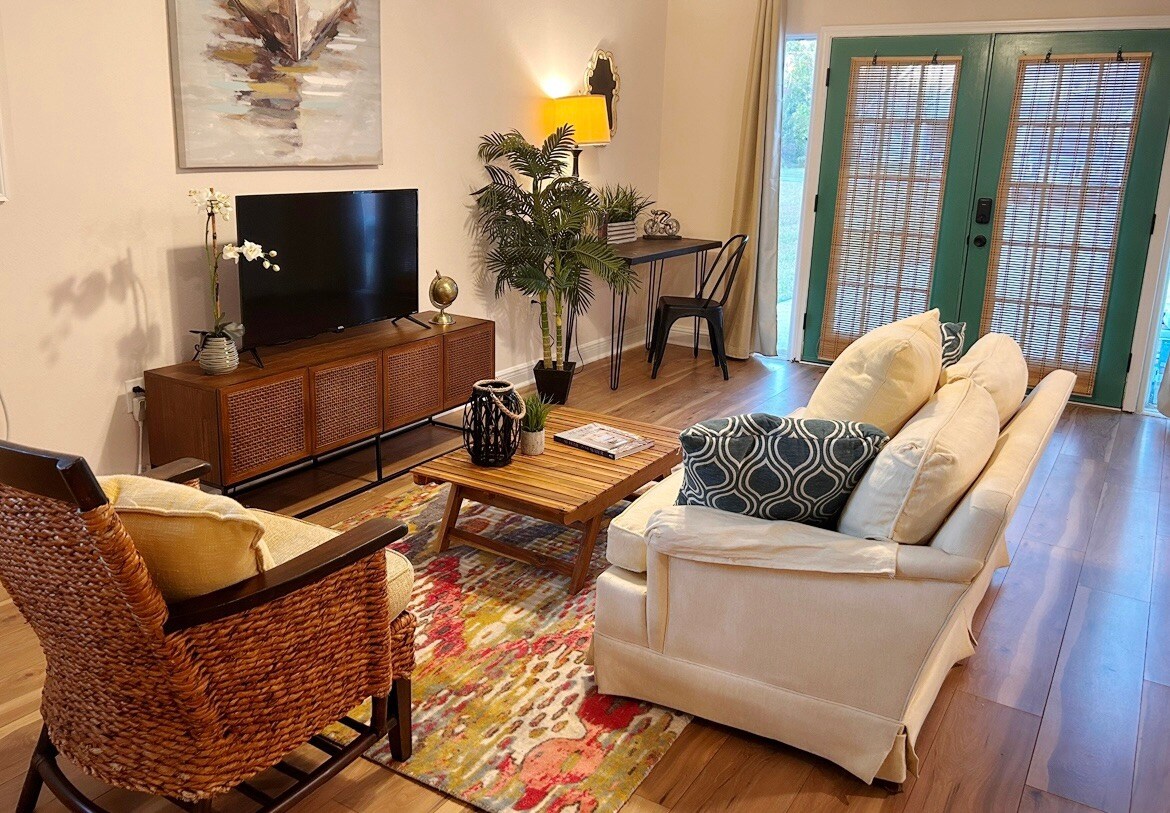 This stylish home is perfectly located just minutes from Old Town Bay St. Louis and 4 blocks from the ocean. Completely stocked with everything you need. Just pack a bag and come to the Bay! It’s awesome here! We have a fenced in private patio with a gas grill and fire pit. No cleaning fee. Pet friendly. Free parking for 4 vehicles!