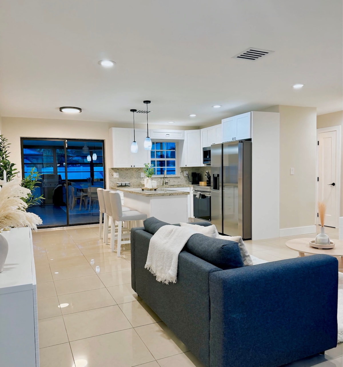 Kick back and relax in this calm, stylish space. completely renovated in August 2021. Beautiful luxury shower, wood floors and beautiful chef kitchen. Designed with quartz counters and new stainless appliances. Glass and oceanic atmosphere. Stocked with everything you need for a vacation- long or short. 4 minutes & $6 Uber ride from the hard rock hotel and casino entertainment center, Where world famous concerts and events take place. 10 minutes from the beach and the Fort Lauderdale airport.