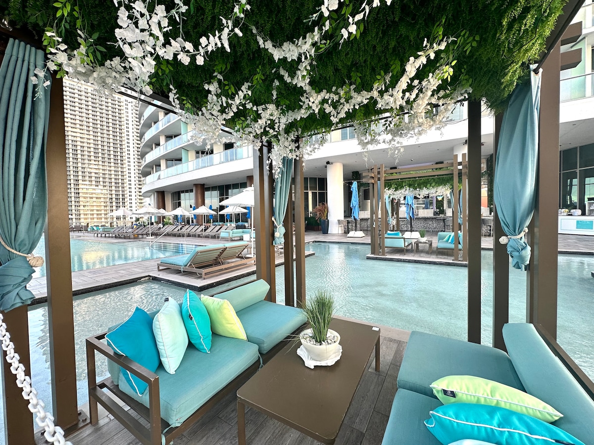 In the Tides in Hollywood. *NO RESORT FEE!* Located on the 6th floor with stunning ocean and pool views and facing south for maximum sunlight. Enjoy this high end modern apartment located between Miami and Fort Laudedale. The complex is right on the beach . The Tides has 2 heated pools , gym , game room , catering ($) and store ($), parking ($), sitting area under tiki , etc Located on South Ocean Dr. near Hallandale Blvd DBPR:CND1622639