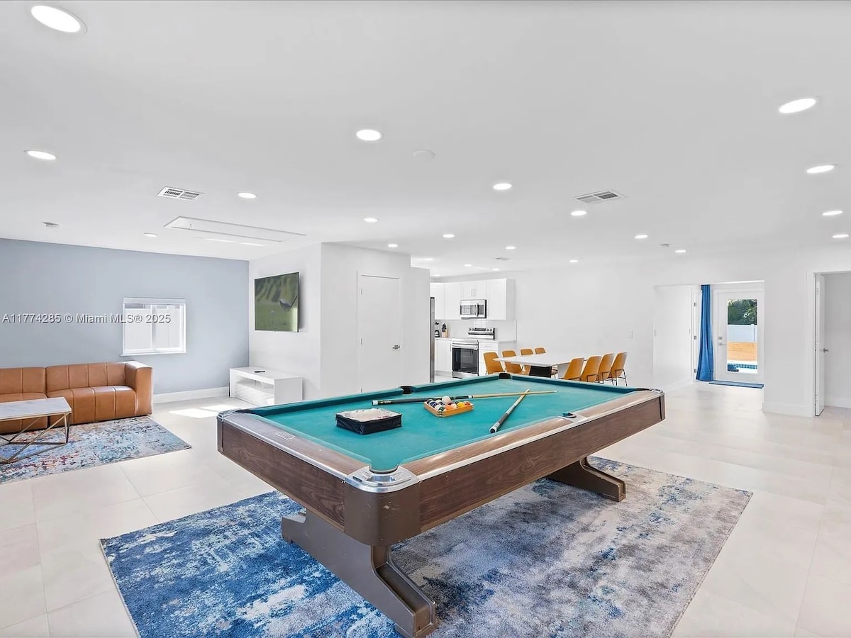Escape to this family friendly home located in Fort Lauderdale. Conveniently 10 minutes from the airport and 7 miles from the beach, this stylish property offers the perfect blend of luxury and convenience. Inside, enjoy sleek, welcoming colors with spacious living areas and inviting interior. Step outside to a beautifully landscaped backyard with a private heated pool, outdoor dining for the family, and even some cornhole while you wait for your hot dogs off the grill! Your paradise awaits!