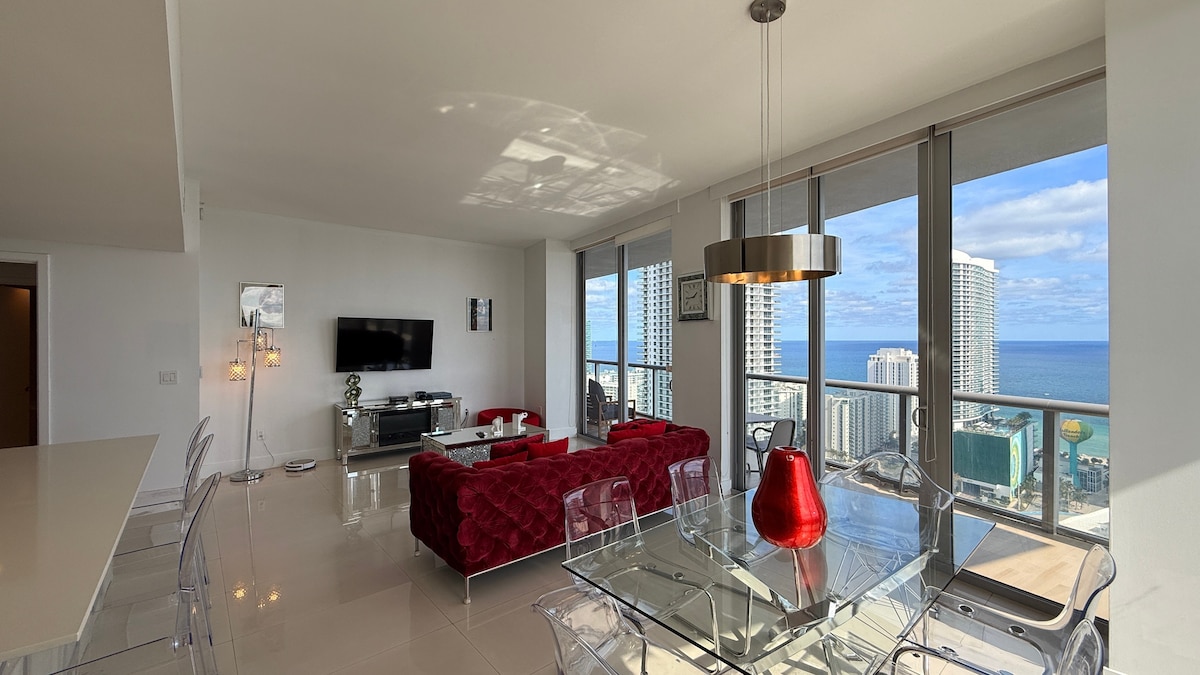 Welcome to my Beautiful private beach condo in Hollywood Beach ,Florida. Upon entry, you are greeted by floor-to-ceiling windows in the main living space; a formal dining space that is connected to the main living space offers open concept living and entertaining. IMPORTANT: *One time Registration fee ($50+taxes) and *Resort fee ($40+taxes) per Day ( per property ) will be collected by resort at the checkin time since they were not collected by Airbnb during the booking time.