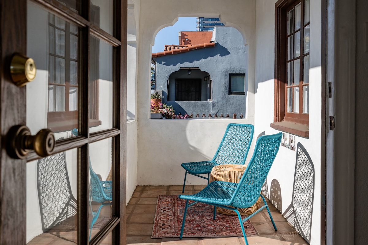 PLEASE NOTE: CONTACT THE OWNER WITH AVAILABILITY ON REQUESTS DATES, AS SOME DATES MAY APPEAR BOOKED ON THE CALENDAR THAT ARE AVAILABLE. ENTER through the wood Spanish door to the villa located outside of the Villa ONLY and NOT the wrought iron gate located to the left of the driveway. Enjoy a glass of wine on the covered patio of this gated 1920’s Spanish Duplex/villa. Original touches. White oak floors, and French doors throughout that evoke another era. Utilize the gourmet kitchen or unwind in the beautiful rain stone shower. This authentic villa has everything and more you need for a perfect vacation and yet a stones throw away from the hustle and bustle. An authentic experience, and perfect to unwind in the Hollywood Hills after a long day of sightseeing. A true gem. Located behind gates, this privately secluded villa/duplex sits at the end of a culdesack. First time on the market, Located between the a Hollywood Bowl, Yamashiro's and the Magic Castle restaurant. Just 1 mile up the road from world famous Hollywood Blvd, sunset blvd, and famous Runyon Hiking Trail. Walking distance to Hollywood and Highland mall, hip restaurants, bars and many more. This 1250 square feet lower 2 bedroom villa offers, 1 beautifully decorated spacious bedroom with a built-in rustic banquete adorned with Moroccan pillows, French windows with shades, and plenty of light. The second bedroom offers a very comfortable sofa bed that sleep two. Gorgeous wide oak hardwood floors throughout the villa with rustic beams and arches adorn the beauty of this space. The spacious loft like living room and dinning room are surrounded by windows and views of the hillside and greenery. Large bathroom with terrecota floors and a large cooks kitchen with stainless appliances. French doors throughout with plenty of light and 3 private patios to enjoy a glass of wine and enjoy the views. Perfect for enjoying the evening with a glass of wine. Truly a hidden gem that sits behind gates and yet walking distance to all of the hottest spots in LA. This house has never been on the rental market and has recently been renovated to its original charm.Stay in the heart of the Hollywood Hills in this private secluded Villa duplex which sits behind gates and extremely private. Just a stone's throw away from the Hollywood Bowl, Hollywood Walk of Fame, Chinese and Dolby theaters, The magic Castle, and yet you'll feel a world away. This quiet historic neighborhood offers a beautiful walk through history. Once the neighborhood of Marilyn Monroe, Frank Sinatra, Richard Gere , amongst many many others. Mountain views, the Florentine Bell Tower, spanish homes carved into the hillside makes this neighborhood a true gem for history and authenticity into something replicated out of southern Italy. This Designer villa was just renovated to the ten's with all of the bells and whistles making it a truly authentic experience for your stay. Situated at the end of a cul-de-sac and extreme secluded away from the hustle and bustle, yet walking distance to all of the hottest restaurants and night clubs hollywood has to offer. This villa sits surrounded by trees and mountain views from the living room and outdoor patios. Walk out the double french doors to a stunning outdoor large gazebo with built in benches, restoration hardware and moroccan furniture surrounded by lavender plants and tranquility, perfect for relaxing in the sun or enjoying a glass of wine after a long day. Walk out the other double french doors in the kitchen to another patio where you fill find built in banquets for relaxing or reading in the shade. Built in BBQ perfect for grilling and eating under the stars. This villa was just completed and has never been on the rental market. A TRUE GEM. Exposed rustic beams, stone arches and rustic chandeliers adorn this unit, giving you the feel of old spain. Gorgeous new kitchen fully equipped with top of the line stainless steel appliances. Wide plank oak floors throughout the unit, and stunning stone bathroom with built in seating to shower under the rain shower. The living room also offers a 50's flat screen TV with a sound bar perfect to relax and watch a movie. Both bedrooms are located next to each other. Fully equipped villa with all of the amenities and central AC and heat. This is the lower unit, completely private and separate from the top unit. No smoking or pets allowed. Sorry. MUST SEE IT TO APPRECIATE THE DETAIL. A TRUE GETAWAY! Walking distance to the Hollywood Bowl, Sunset and Hollywood blvd , Runyon Canyon hiking trail, Yamashiro Japanese restaurant, The Magic Castle restaurant and all of the trendiest restaurants and bars in Hollywood. Often. I am here to make your experience a memorable one. The villa is in the heart of Hollywood Hills, tucked away behind gates and conveniently located close to the Hollywood Bowl, Grauman's Chinese Theatre, and The Magic Castle, plus many great Hollywood restaurants. Hollywood and highland subway station. 101 and 170 freeways. Street parking if garage not available. NEST thermostat control from the smart TV.