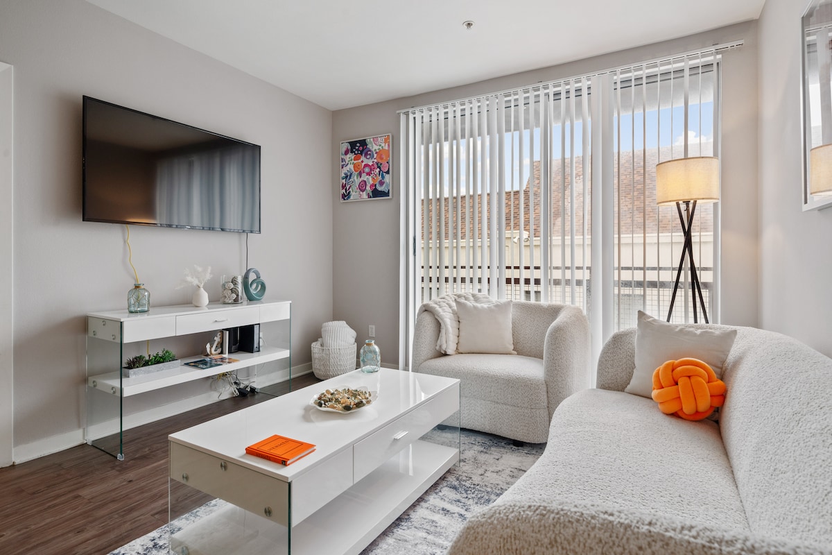 When you're away from home, you want a space to call your own. Level’s extended stay apartments are designed with you in mind. Fully furnished, our spacious, design-forward suites boast fully-equipped kitchens, functional living areas, personal outdoor balconies or patios, and convenient in-suite laundry. A daily destination amenity fee of $39.44 will be added per room, per day up to a maximum of 29 days