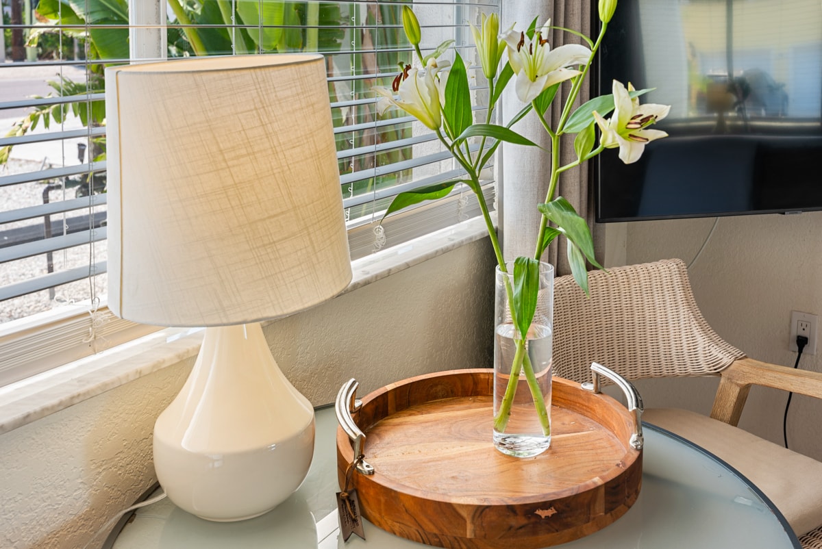 Palm Tree Villas offers a portfolio of eight unique 1950's resort rooms ranging from small studios to three bedroom villas with three bathrooms. We would love to host you for a wonderful quaint island getaway vacation. Conveniently close to the trolley line with many great eating spots around and close enough to walk to the beach. This offering is an extremely popular 2 bedroom-2 bathroom, fully equipped condo with dining and living area and a private backyard patio with barbecue grill.