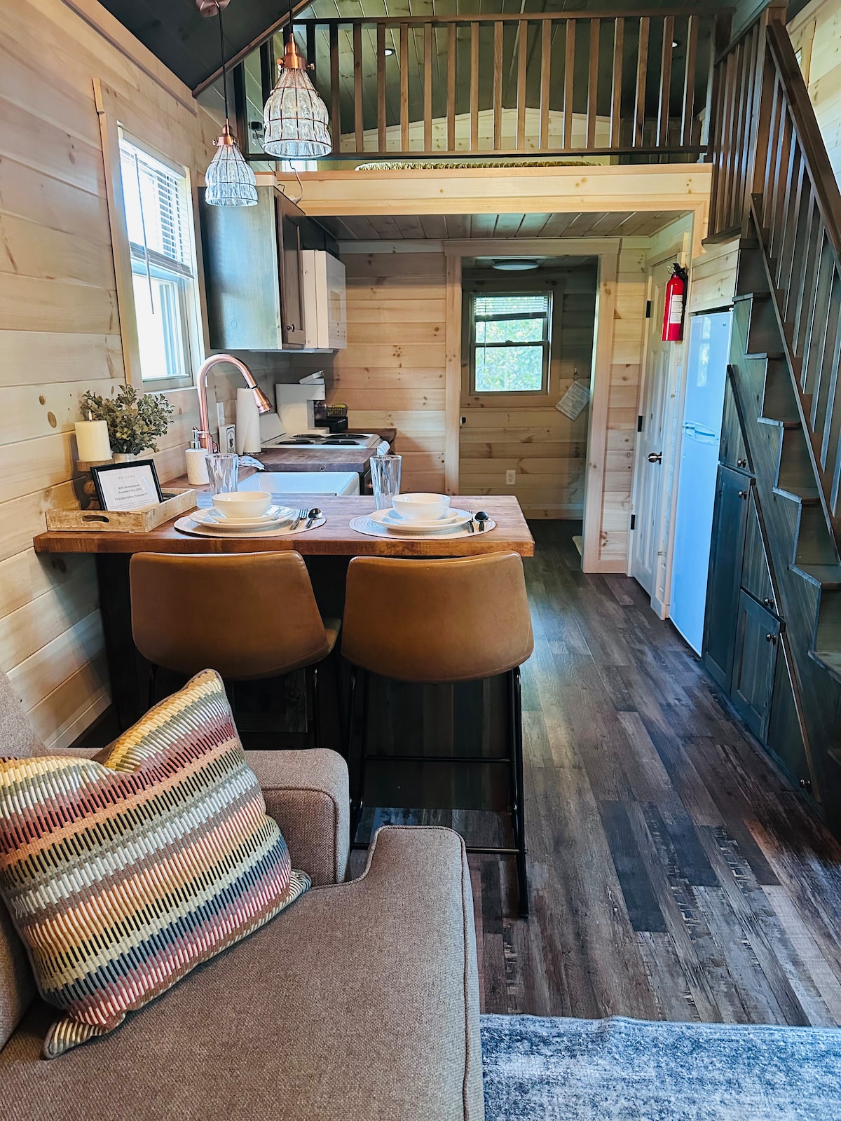 The Haven is just that - a place of rest. Keep it simple at this peaceful and centrally-located place. The cabin is nestled in a wooded area with a pond view and rolling hills. In the heart of beautiful Amish country we are just minutes away from popular attractions. The living area includes a full kitchen, washer and dryer, and comfortable furniture to enjoy a smart tv and fireplace. A King bed and full bath on the main floor. The loft has a queen bed. We welcome you to come stay with us!