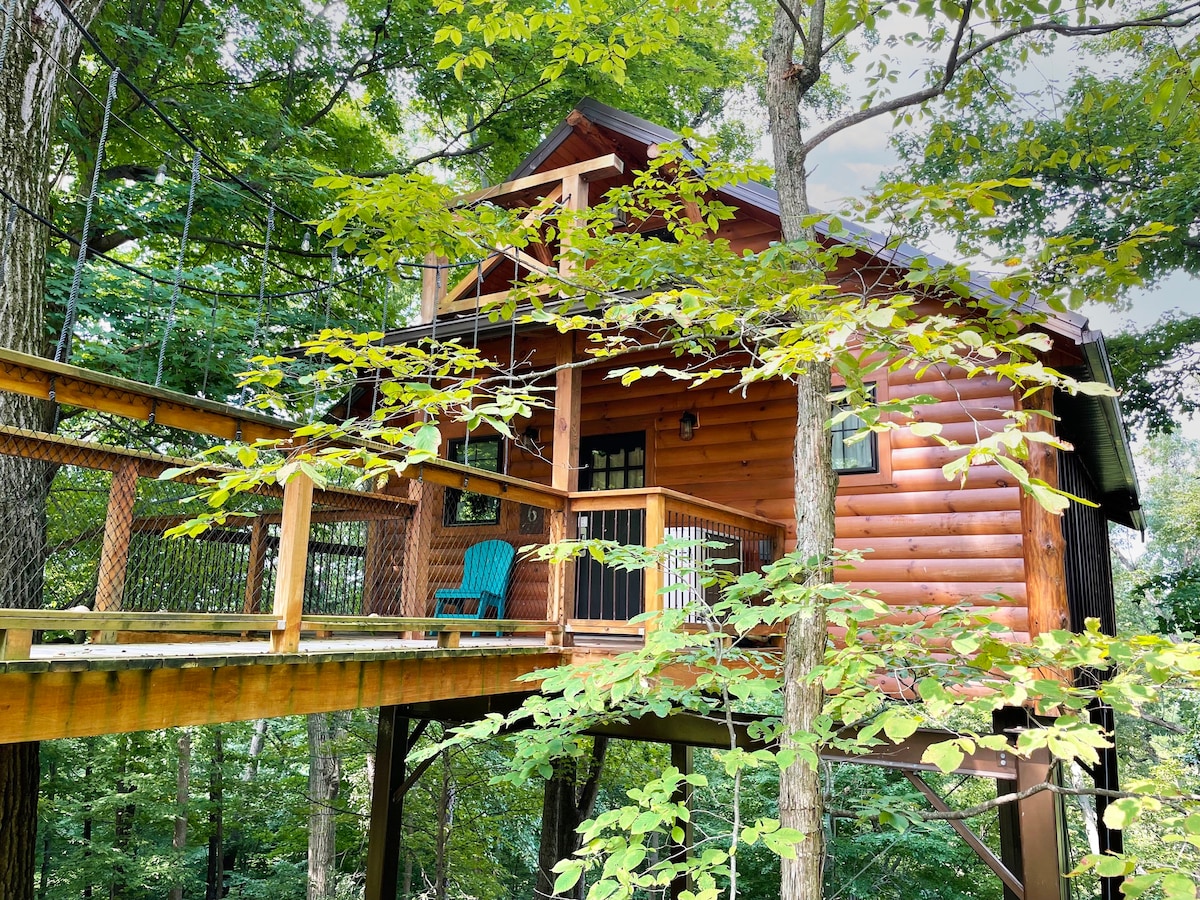 Discover the ultimate romance in trees 30 feet off the ground! This luxurious treehouse offers the perfect treehouse lodging in Ohio for a romantic escape. Private setting in the woods on a 38-acre property in the heart of Ohio’s Amish Country. Enjoy a king bed and a living room with a sofa and sitting chair. A covered porch will help you enjoy the breathtaking treetop views. Come see why these incredible one-of-a-kind Treehouses were featured on HGTV! We're sure you'll have an incredible stay!