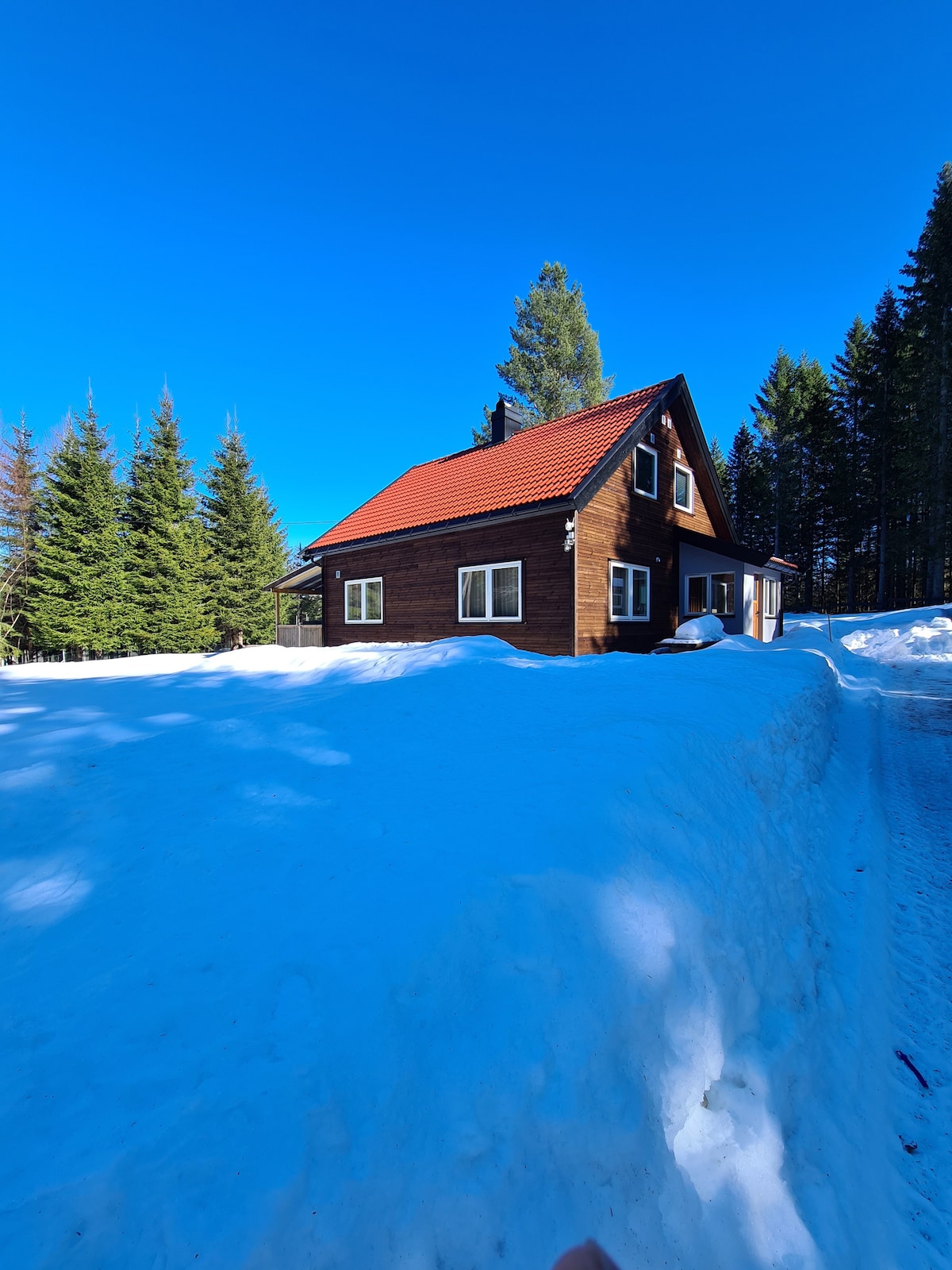 Det lille røde huset ved fjorden. Ønsker du å våkne opp med bølgeskvulp og fuglekvitter i naturskjønne omgivelser både sommer som vinter - da er dette stedet å anbefale. Tid for ro og eller aktivitet. Her kan du bare sitte med boka eller kaffekoppen og kikke utover vannet. Eller du kan leie el.sykler, spille sandvolleyball, padelbrett, fiske eller gå på ski på vinteren. Kun noen få trappetrinn ned til flotte Sandvikstranda og kyststien som går både mot Sande og Svelvik. En time fra Oslo.