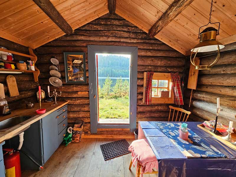 Anneks på 15 m2 ved siden av vertens hytte, som ligger 10 meter fra vannet. Hytta er vestvendt, med flotte solforhold i skjærmede omgivelser. Nyt sol, vann og skog, her er det både tur-, bær- og soppterreng, du kan også fiske uten kort. Du hører lyden av både kyr og høns i det fjerne, og vinden som suser i furutrærne. Rustikk sjarm, enten 200 meter å ro, eller ca 500 meter å gå fra parkering. Her kan du finne roen. Du bor alene i annekset, og uteområdet er gjerdet inn. Dyr er velkommen!