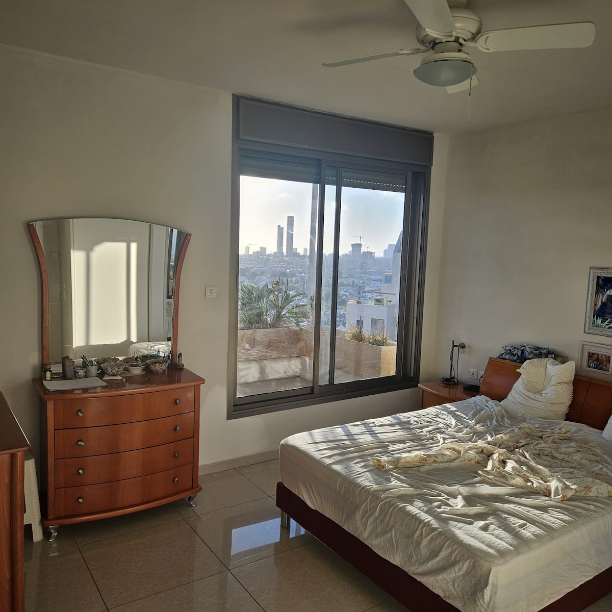 stylish penthouse with gorgeous sunset views! Enjoy a spacious terrace with a swimming pool in the summer (June–October) and a hot tub year-round. Elegant master bedroom with a balcony and bathroom, and a safe room with another bathroom. Located on the 7th floor — bright, airy, and welcoming. Private parking . Just 10 min from Tel Aviv and 20 min to the beach, cafes, and restaurants. In Holon’s best, most central neighborhood — vibrant, lively, and full of charm. — your perfect urban retreat!