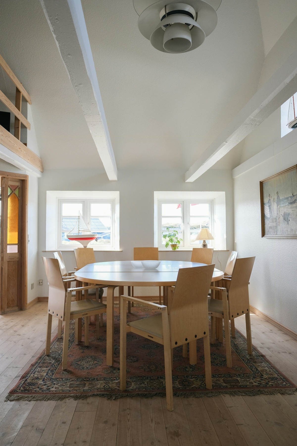 Charming summer house with panoramic views of Helmklit Harbor and Nissum Fjord. Features a spacious living area and kitchen with dining space, 4 bedrooms (2 doubles, 2 singles), a large bathroom, and a guest bathroom. Washer and dryer in the hallway. Outside, enjoy a small covered terrace by the hot tub and a larger terrace with a view. EV charging station available. Bring your own bed linen and towels; duvets and pillows are provided. Electricity billed per consumption: 3,0 DKK/ kwh