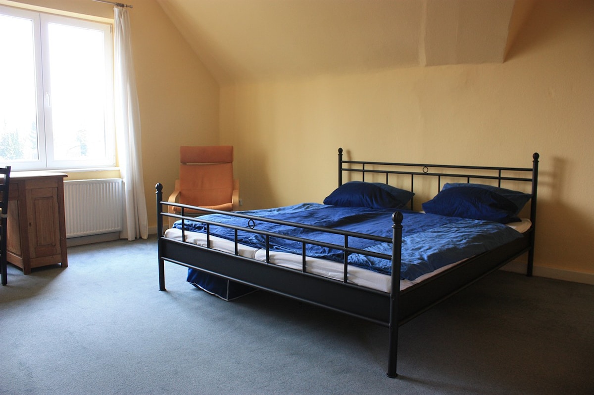 Schlafzimmer, Boxspringbett 180/200 - Bad +WC "en Suite" -Föhn -Fernseher -Frühstück auf Wunsch, je Person 10 € -Innenhof und die Terrasse können gerne genutzt werden. -Fahrräder können gerne untergestellt werden. -Stellplatz vorm Haus Tiere nach Absprache und Verträglichkeit möglich, da bereits -Hund und Katzen meine Mitbewohner sind, aber bitte keine unkastrierten Rüden!!! Tiere wohnen umsonst, aber vielleicht etwas in die Leckerli-Spardose werfen, da die Reinigung doch umfangreicher ist.