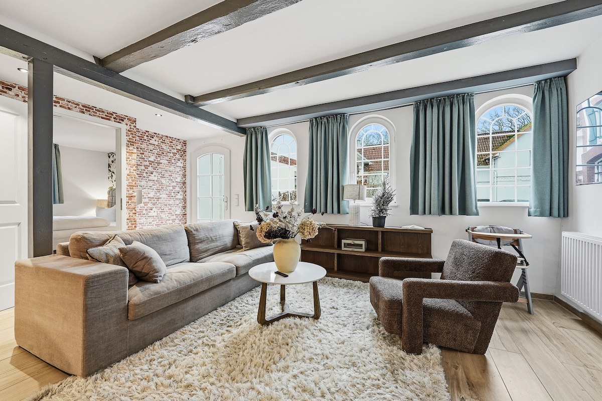 Welcome to Studio N54/E9! Our charming apartment is tucked away in a quiet courtyard, right in the heart of Eckernförde’s old town – just 150 m to the Baltic Sea beach, 100 m to the train station, and the best fish sandwich next door. Enjoy the 75 sqm rooftop terrace with a beach chair or relax in the shared garden with sandbox – perfect for couples or small families.