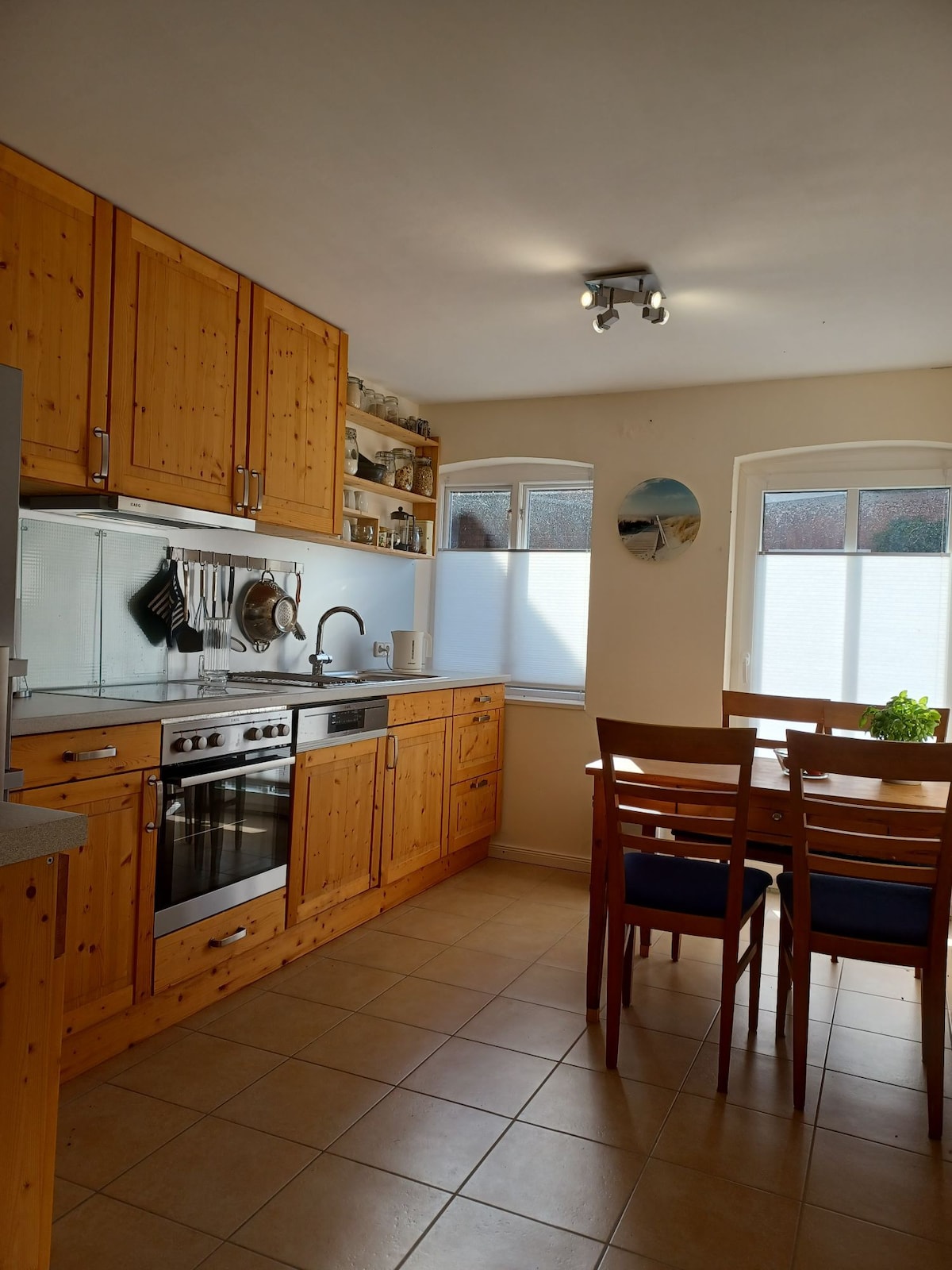 Hab Spaß mit der ganzen Familie in dieser stilvollen Unterkunft. Die Unterkunft hat eine sehr gute Ausstattung und viele Extras. Zum Träumen kommst Du in ein Boxspringbett mit 180x200 cm, und kannst Dich in dem Bad entscheiden ob Du gemütlich in der 190x90 cm großen Badewanne Baden, mit Regendusche oder kleinen Massageduschkopf Duschen möchtest. Für ein Kind oder eine 3 Person ist auch noch ein Gästezimmer da, was aber auch als Arbeitszimmer genutzt werden kann. Kochen kannst Du in der Küche.