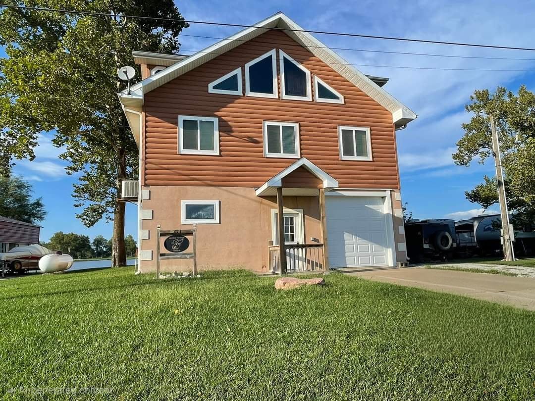 Spacious lakefront home on Big Lake Missouri. 3 bedrooms with a very spacious master bedroom. Two 75" TVs if you manage to not be outside enjoying the views. There's also a large dining room table that seats six comfortably but people usually sit around the large kitchen island. Fiber optic wifi connection so you can stay connected. I live here part time so the kitchen is fully stocked with most everything you could need. Covered roof over deck. Basement not included. No pets allowed.
