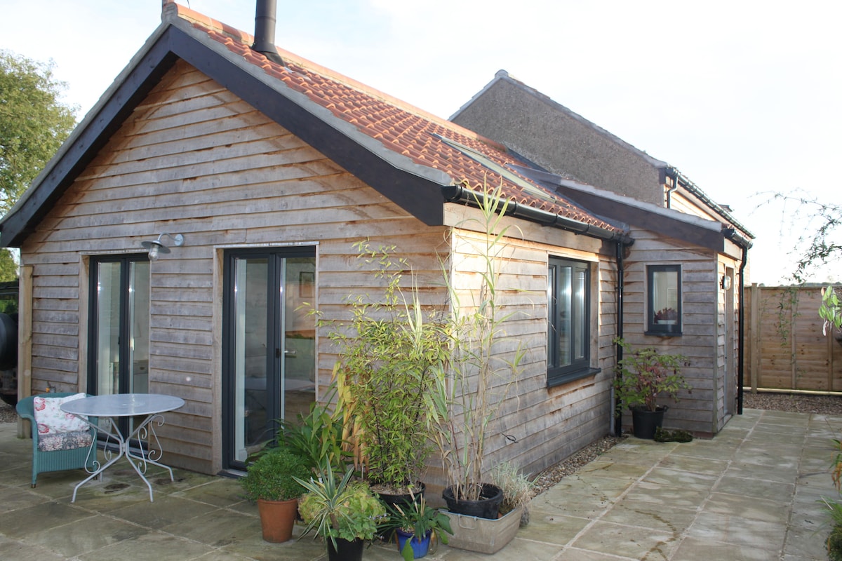 Flint is cosy, peaceful, characterful with carefully chosen modern fixtures for a comfortable stay. 3.7 miles from the sea on a peaceful country lane with far reaching rural views. Our 2 story annexe is attached to the end of our 1795 flint cottage. Regularly commented on in reviews - comfortable super king bed or made up as twin single beds. Popular for babies and children. Fully equipped kitchen great for home cooking with local farm shop nearby. Private patio, free parking, bike storage.